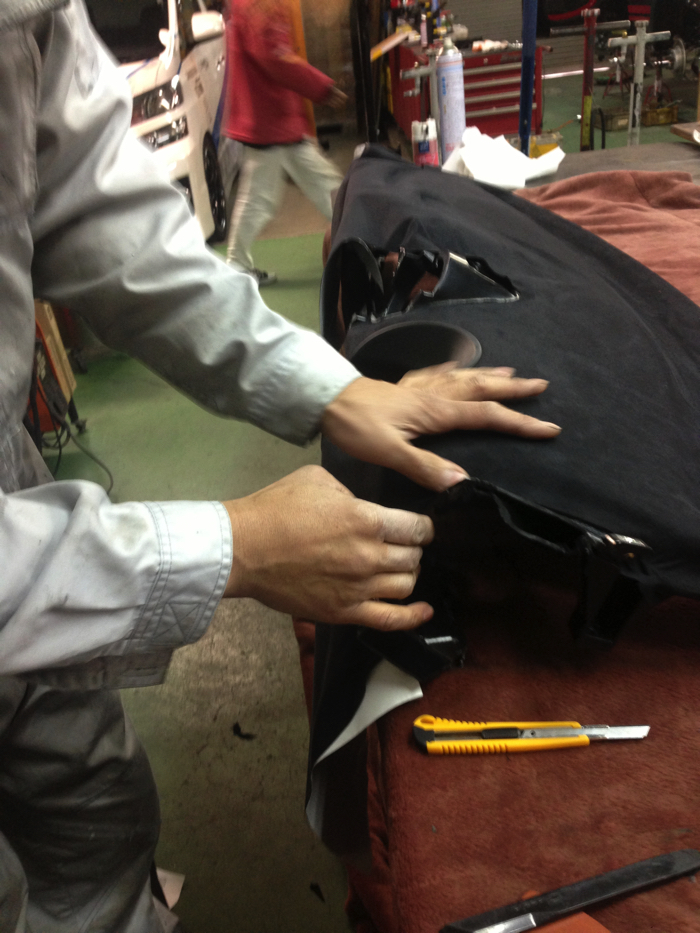 このように手作業で丁寧に防眩加工をすることで、ダッシュボードの反射を防ぎ万が一のリスクをできるだけ減らし安全なドライビングができるようにする