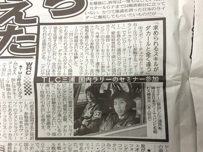 先日のTRDラリー練習会の件が本日発売の東京中日スポーツに掲載されているようです。