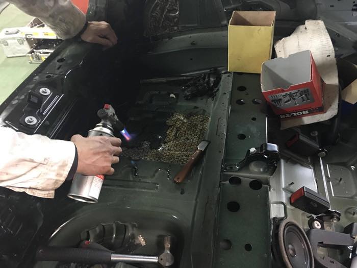 競技車両は内装をバラすところから始まります。