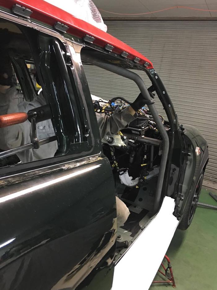 寸法を測った後、ロールケージを合わせていきます