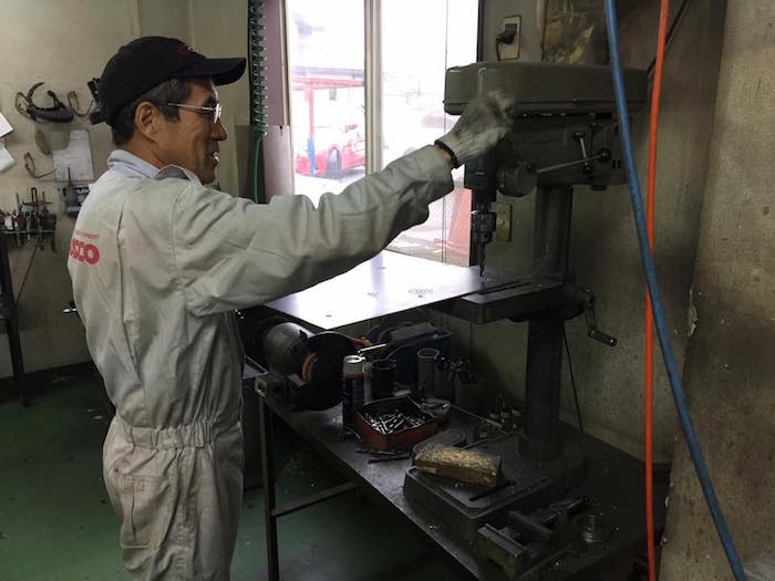 三枝メカニックが鉄板を切ったり貼ったり