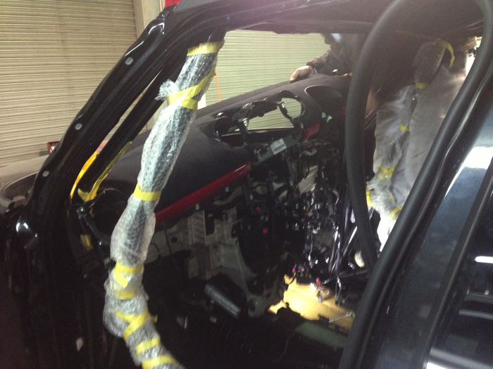 まず窓ガラスを取っ払ってあるフロントウインドウからダッシュボードを引っ剥がします(抜き取ります)