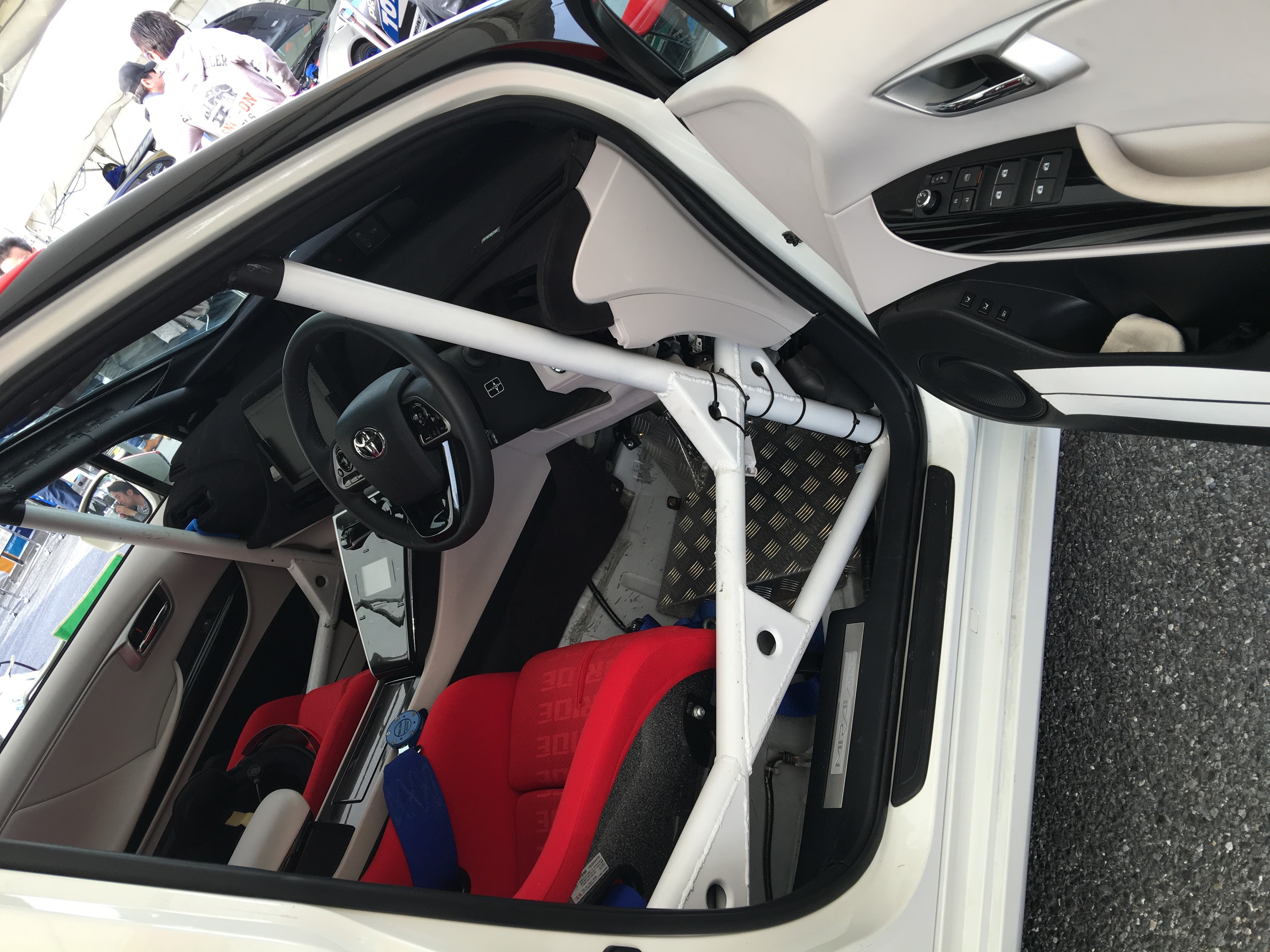 MIRAIのラリーカーは内装もほとんどノーマルシートが変わっていて、ステアリングもノーマルです。